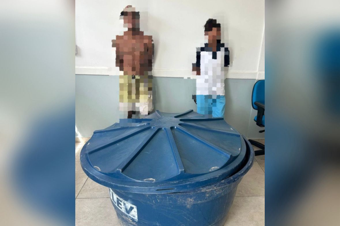 Um adolescente de 14 anos foi apreendido nesta quinta-feira (02), no município de Cacimbinhas, no interior alagoano, pelo furto de uma caixa d’água do local onde funcionava a delegacia da cidade. Além dele, um homem foi preso e ambos podem estar envolvidos com outros crimes em estabelecimentos comerciais e em residências.