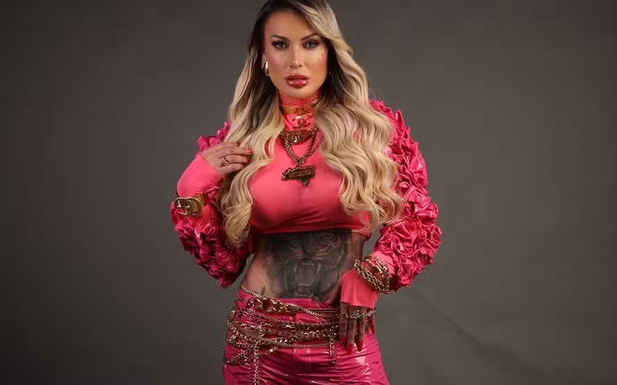 A influenciadora Andressa Urach, 38, divulgou novas fotos de sua fase como MC Ímola, personagem que marca sua estreia no funk. As imagens seguem o estilo do funk ostentação e mostram a artista e influenciadora usando joias avaliadas em mais de R$ 30 mil. Os registros fazem parte da divulgação de sua nova identidade visual.