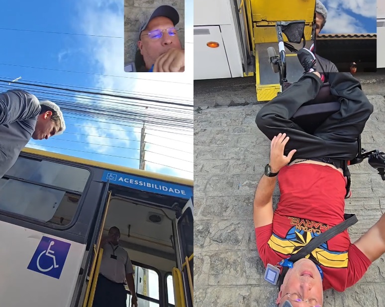 Um cadeirante caiu de um ônibus enquanto gravava um vídeo para denunciar um problema no elevador do transporte coletivo, em Maceió. O presidente do Conselho Municipal dos Direitos da Pessoa com Deficiência, Edmilson Silva de Sá, contou que foi a segunda vez, somente neste mês, que isto aconteceu com ele.