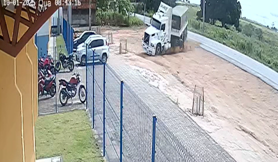Uma câmera de segurança registrou o momento em que uma carreta desgovernada invadiu e derrubou parte da estrutura de uma escola, na manhã desta quarta-feira (1°), em São Sebastião, no Agreste alagoano. Apesar do susto, nenhum estudante ou funcionário foi atingido.
