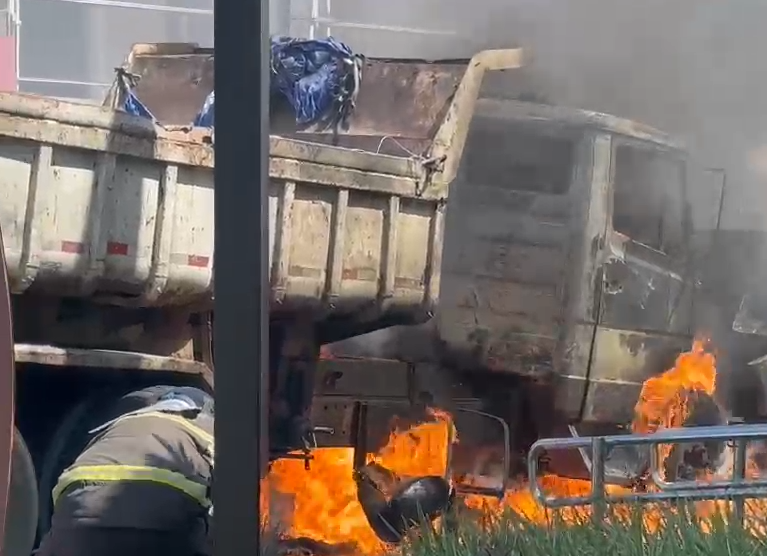 Um caminhão-caçamba pegou fogo nessa segunda-feira (29) na Avenida Antônio Lisboa de Amorim, no Tabuleiro dos Martins, em Maceió. Apesar do susto, não houve feridos.