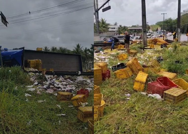 Uma carreta carregada de frutas e verduras tombou na Ladeira do Catolé, na BR-316, em Satuba, na manhã desta quinta-feira (9). Não há informações até o momento sobre a dinâmica do acidente e sobre o número de vítimas.