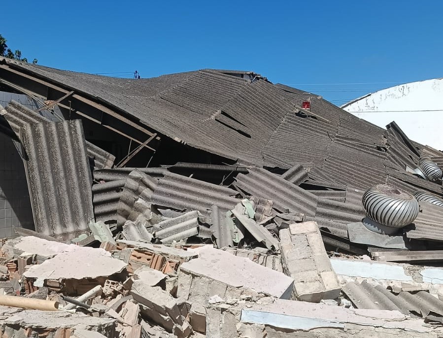 Testemunhas afirmam que o imóvel estava prestes a ser demolido, e imagens mostram a extensão dos danos, com grande parte do teto espalhada pelo chão.