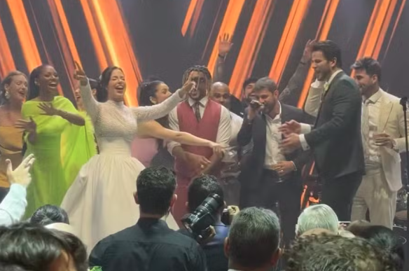 Além da performance musical, outro momento marcante da festa foi a disputa pelo buquê da noiva, considerado o “prêmio” mais cobiçado da noite. Eslovênia Marques conseguiu agarrar o buquê após Laís decidir lançá-lo duas vezes durante a celebração. Na segunda tentativa, a ex-BBB comemorou o feito com um sorriso largo e muita empolgação, mostrando que a diversão e a competitividade entre os participantes do reality seguem vivas mesmo fora das telas.