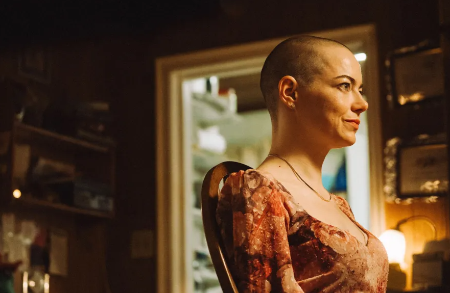 Isso porque Stone teve de ficar ela própria careca para gravar o longa-metragem, que terá exibições antecipadas no Brasil durante a Mostra de Cinema de São Paulo.