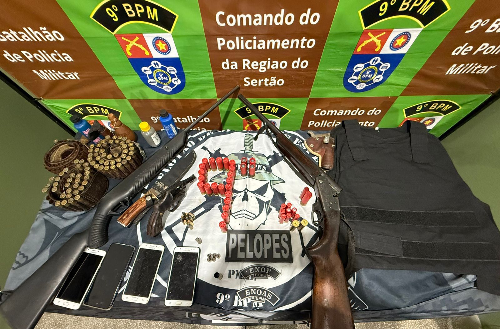 Acompanhado pelas guarnições, o suspeito autorizou a ida até sua residência para buscar a documentação. No local, ao ser questionado se possuía algo ilícito, confessou manter duas armas de fogo em casa, alegando que as guardava para proteção pessoal devido a ameaças que estaria sofrendo em razão do processo judicial em curso.