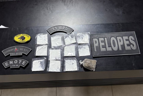 Na motocicleta, os policiais encontraram cerca de 8 gramas de maconha e 11 papelotes de substância análoga à cocaína. O condutor do veículo, identificado pelas iniciais J.N.S., assumiu a posse do entorpecente e do veículo. Segundo a PM, ele já possui histórico de envolvimento com o tráfico de drogas.