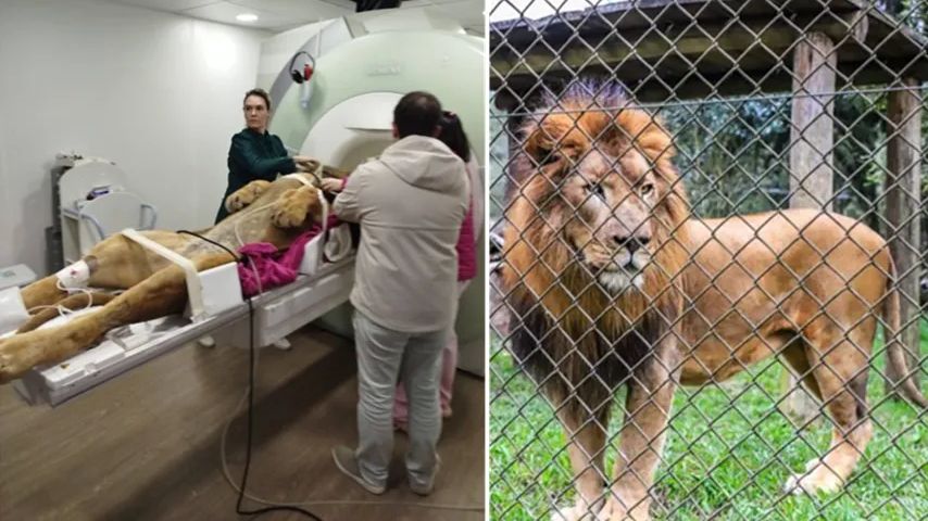 Após a ressonância, o leão retornou em segurança. O felino divide o espaço com a leoa Zâmbia, onde recebeu acompanhamento contínuo até estar completamente restabelecido.