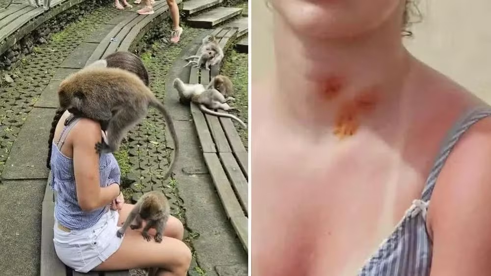 Após serem informadas sobre as normas de segurança, a família McDonald aventurou-se no parque. “Caminhamos por cerca de 40 minutos. Em uma área do parque há um anfiteatro onde as pessoas podem sentar”, disse ela. “Podíamos ver macacos, mas nenhum literalmente em cima ou ao redor das pessoas. Mas, em um minuto, um macaco pulou nos ombros do meu marido… e em segundos passou do ombro dele para o da minha filha.” Flavia disse que Lorena estava “paralisada de medo”.