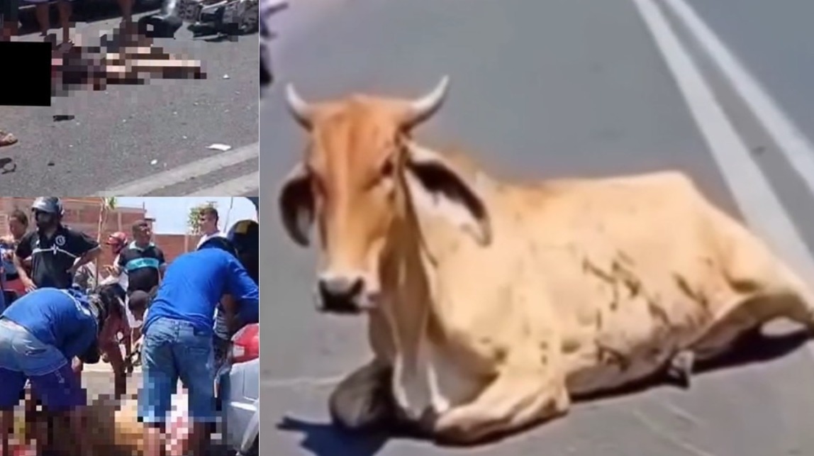 Um motociclista morreu na manhã desse domingo (19) ao colidir com uma vaca, na Avenida Poty Velho, na Zona Norte de Teresina. Após o acidente, pessoas que passavam pelo local esquartejaram o animal vivo.