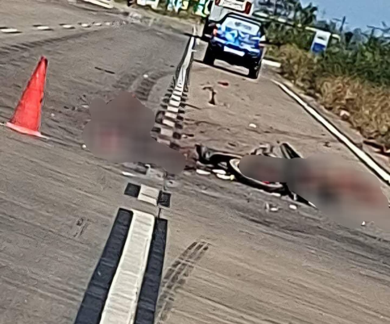 A vítima ainda não foi identificada, e imagens do local mostram a moto destruída e o corpo do motociclista na pista.