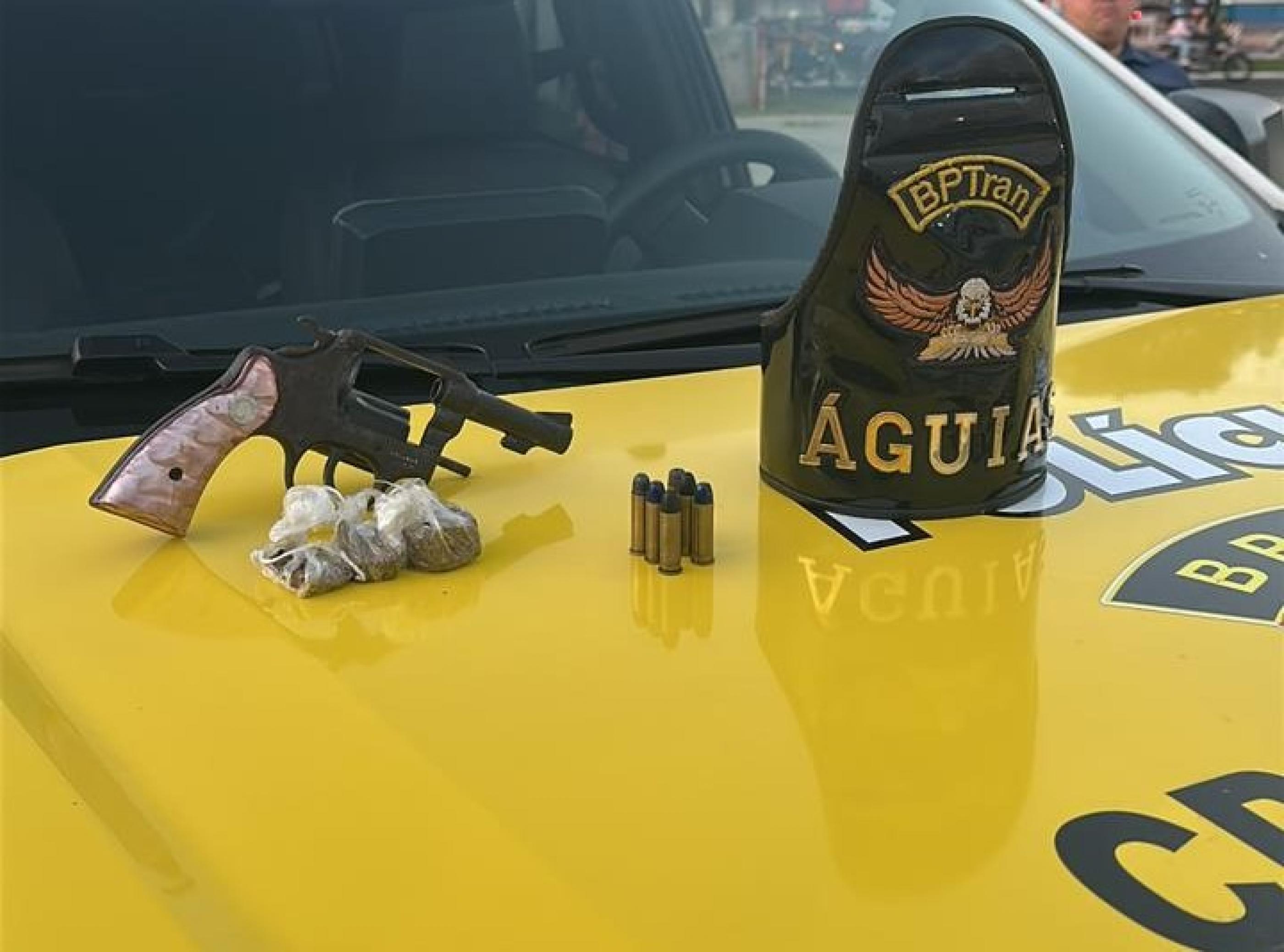 Com ele, os policiais encontraram um revólver de calibre 38 contendo seis munições, sendo uma pinada, além de aproximadamente 30 gramas de maconha. O jovem afirmou ainda que faria uma entrega de entorpecentes. A motocicleta utilizada também foi apreendida.