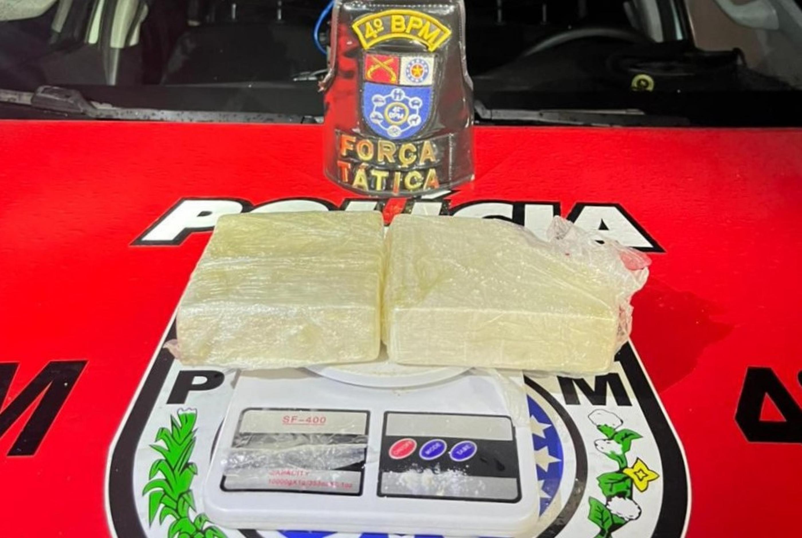 No local, os policiais localizaram aproximadamente 960 gramas de cocaína e uma balança de precisão. O material foi apreendido e levado para a Central de Flagrantes.