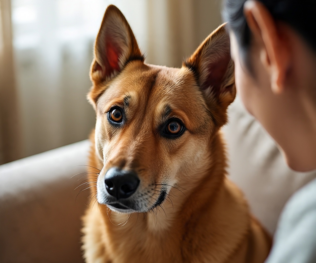 Sons pouco familiares ou que contêm inflexões emocionais (voz mais aguda, exaltação) tendem a estimular esse comportamento. O cão “fica atento” para captar melhor o que está sendo dito ou para reconhecer se há algo de importante no tom usado.
