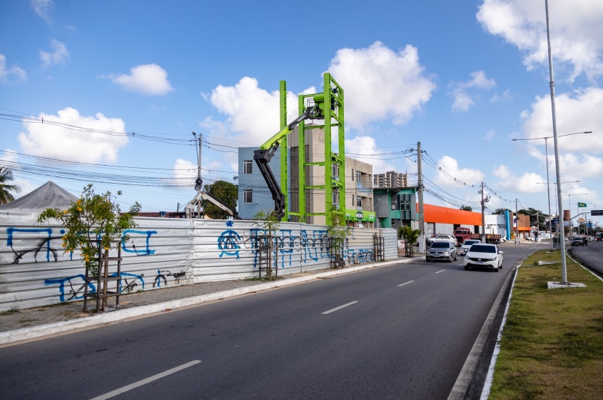 As obras da nova passarela de pedestres do Canaã, na Avenida Durval de Góes Monteiro, seguem avançando. Com a conclusão dos serviços de fundação, teve início a montagem da estrutura metálica com a implantação dos pilares.