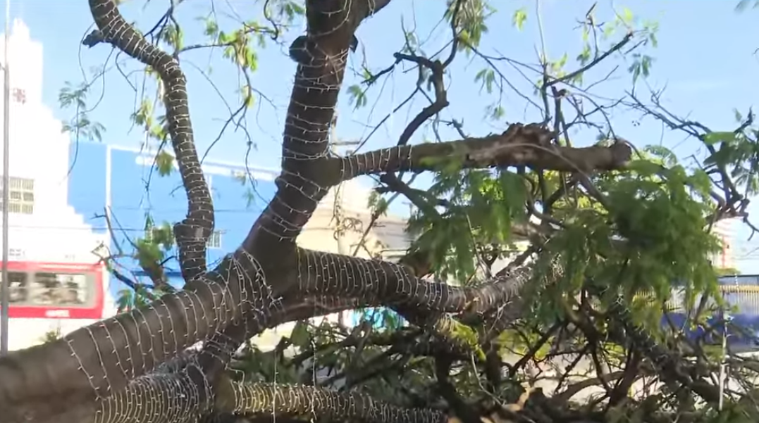 Uma árvore de grande porte caiu na Praça do Centenário, no bairro do Farol, na madrugada desta quarta-feira (25), mas não houve feridos devido ao horário de pouca movimentação de pedestres.