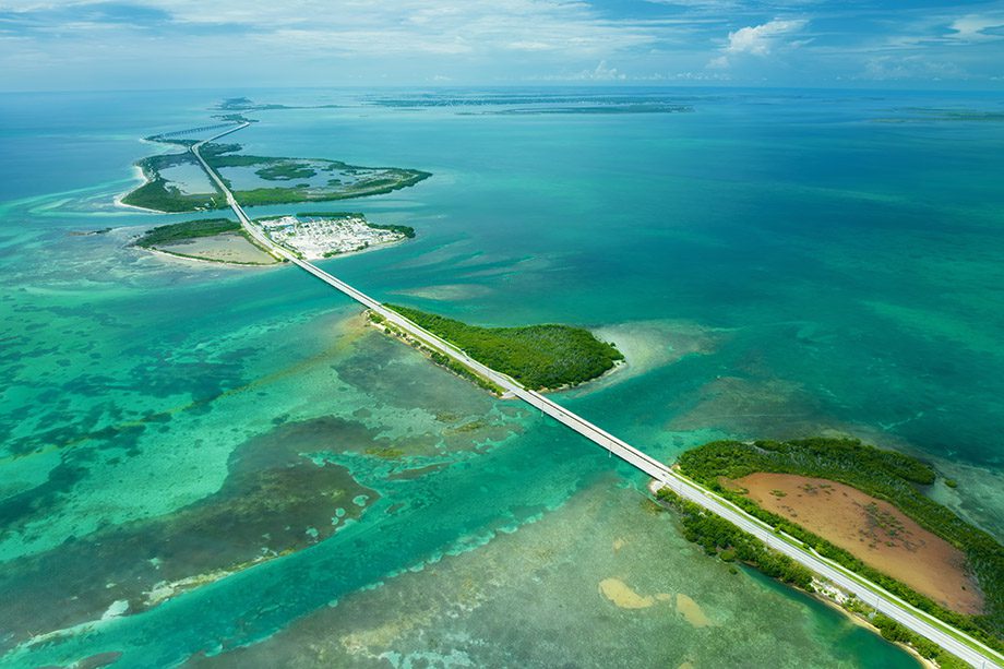 Poucas estradas no mundo oferecem uma experiência tão singular quanto a Overseas Highway, que percorre 182 quilômetros sobre o oceano e conecta as ilhas da região de Florida Keys, no sul da Flórida. Construída a partir das estruturas da antiga ferrovia Overseas Railroad, destruída por um furacão em 1935, a rodovia se consolidou como uma das obras de engenharia mais emblemáticas dos Estados Unidos. O traçado, sustentado por uma sucessão de pontes que se estendem sobre águas de tonalidade turquesa, transforma a travessia em uma paisagem em constante mutação, em que horizonte e mar se confundem.
