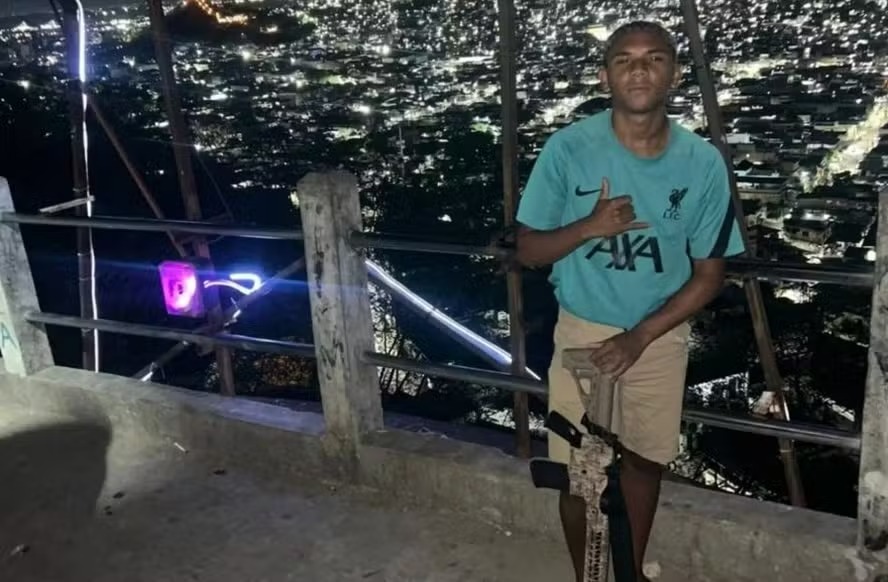 Segundo a Polícia Civil, Michel Mendes nasceu em Nova Iguaçu e era conhecido como Diguerra. A corporação analisou as redes sociais e concluiu que as postagens “demonstram o envolvimento com o tráfico de drogas”. Em uma foto, o adolescente aparece no alto do complexo do Alemão segurando um fuzil.