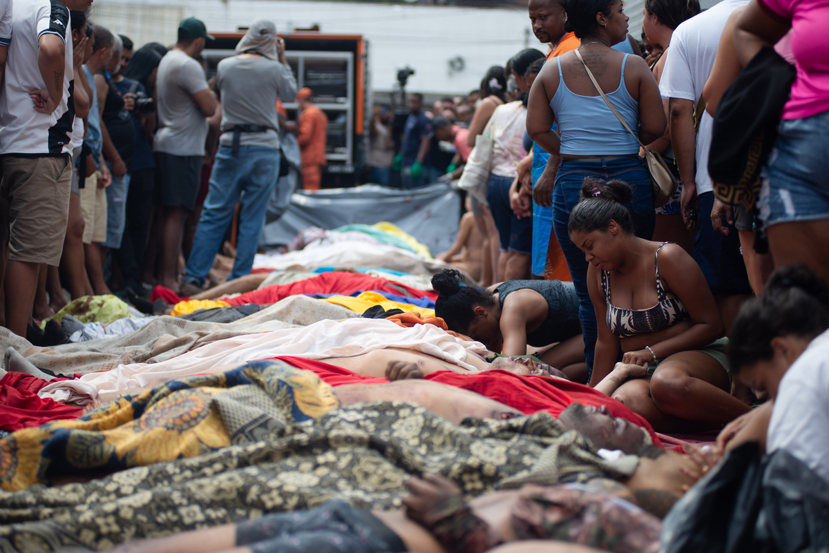 Após uma megaoperação nos complexos do Alemão e da Penha — que, pela conta oficial, deixou mais de 60 mortos na terça-feira — moradores se mobilizaram para retirar da região de mata conhecida como Vacaria, divisa entre os dois conjuntos de favelas, corpos de quem morreu durante a ação policial. Desde as 21h, um grupo composto por voluntários e parentes dos mortos está dedicado a posicionar os corpos na chamada Praça do Inter, na Vila Cruzeiro. Até as 9h, já eram 56, segundo contagem dos moradores.