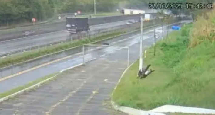 Um vídeo de câmera de segurança mostra o momento exato que o ônibus com torcedores do Flamengo tomba na Rodovia Presidente Dutra, nesta segunda-feira (27). O acidente no km 282, altura de Barra Mansa (RJ).