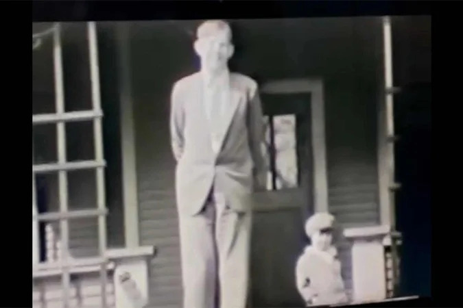 Uma filmagem em preto e branco, registrada em 1933, que mostra o homem mais alto da história, Robert Wadlow, foi divulgada pela primeira vez na última sexta-feira (29/8) pelo Guinness World Records. Com 2,72 metros de altura, Wadlow aparece interagindo com uma menina de 4 anos em imagens capturadas por um antigo vizinho e admirador da tecnologia cinematográfica.
