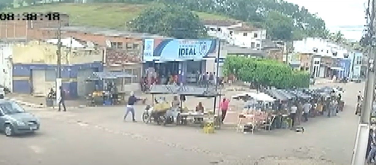 O Fique Alerta, da TV Pajuçara, exibiu com exclusividade, nesta segunda-feira, 29, as imagens do assassinato do ex-vereador Elson Pereira de Souza, 45 anos, conhecido como ‘Bolinha’, ocorrido na manhã do último sábado (27), em uma feira livre no município de Belém, interior do estado.