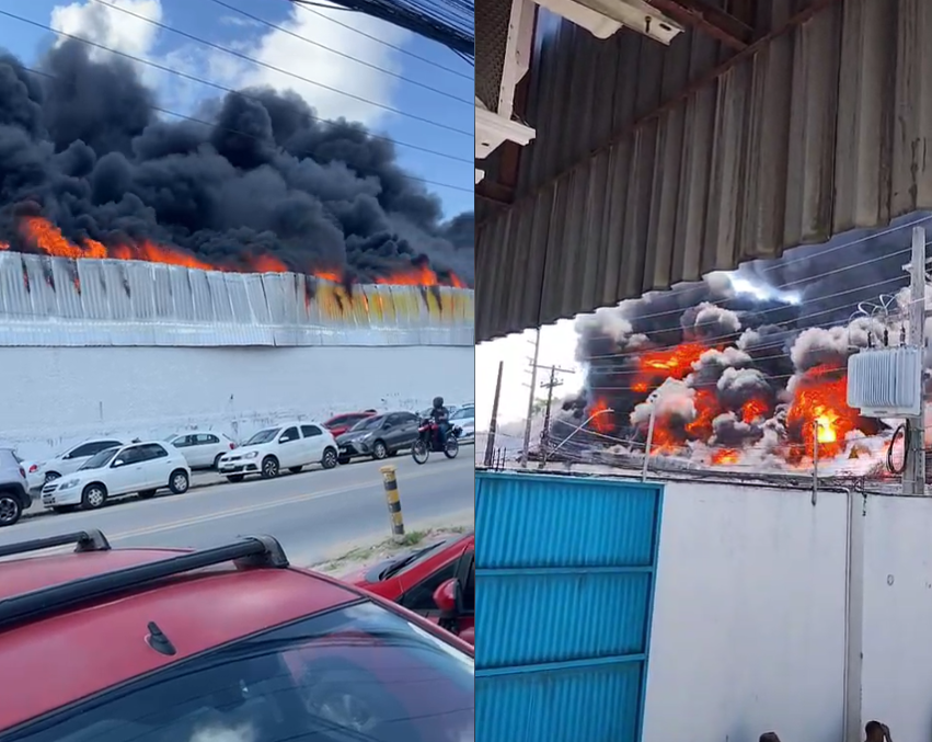 Imagens registradas por populares mostram uma fábrica de plástica sendo tomada por um incêndio de grandes proporções, na tarde desta sexta-feira, 10, no Distrito Industrial, na parte alta de capital alagoana.